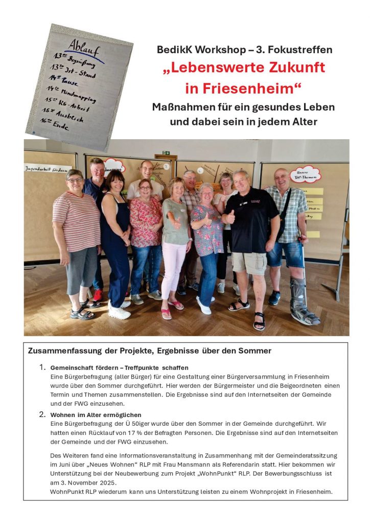 BedikK ist ein Programm zur kommunalen Gesundheitsförderung in kleinen Kommunen, unterstützt mit Bedarfsworkshops durch LGZ (Landeszentrale für Gesundheitsförderung Rheinland-Pfalz).
