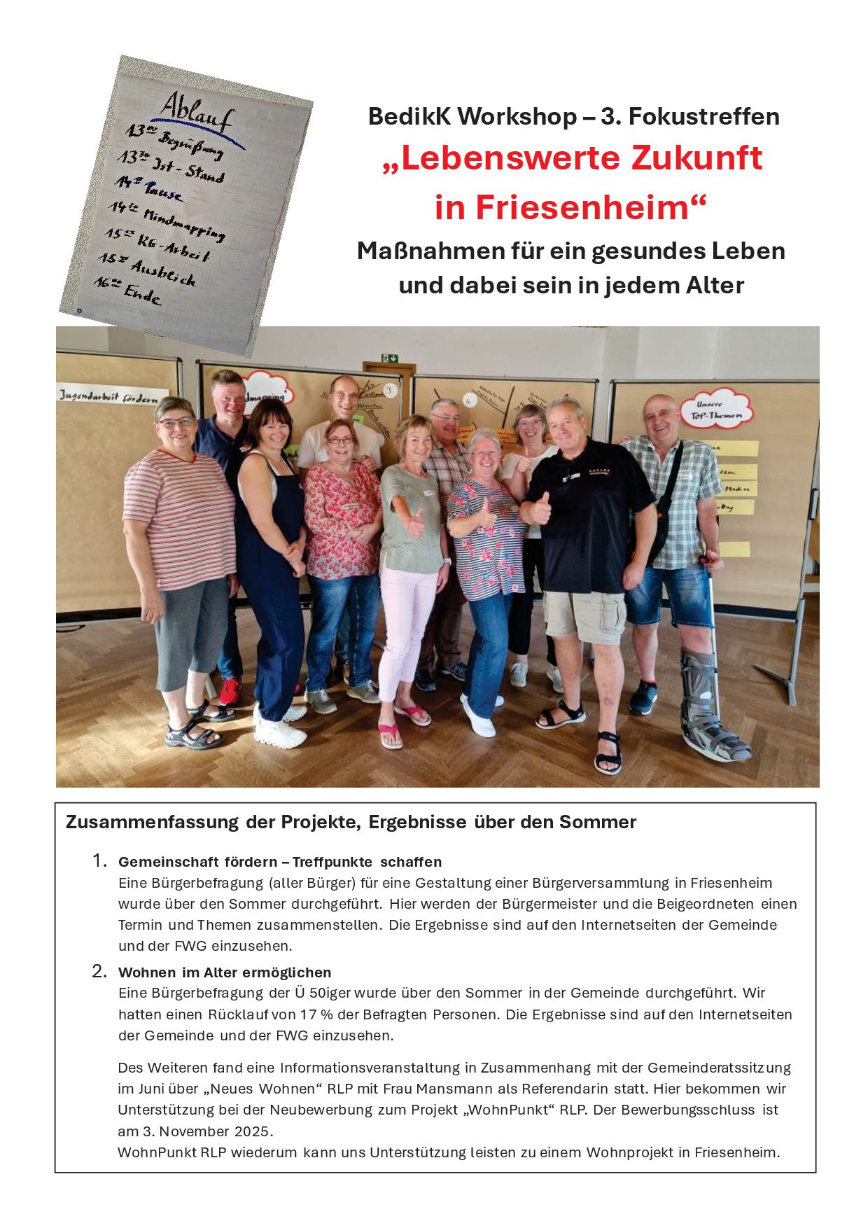 Die Veranstaltung wird in der Gemeinde Friesenheim im Rahmen des Projektes BedikK (Bedarfsworkshop in kleinen Kommunen) der Landeszentrale für Gesundheits- und Prävention Rheinland-Pfalz angeboten.