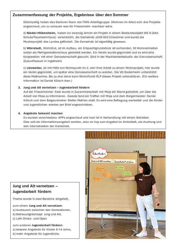 - Informationen, wie man sich im Ort einbringen kann, auch ohne Mitgliedschaft in einem
