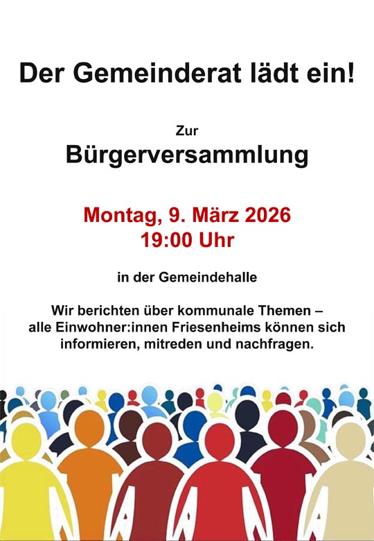 Verein: z. B. Helfer*in bei Veranstaltungen. - Jährliche Bürgerversammlung mit Bürgermeister und Gemeinderat in Friesenheim sollen